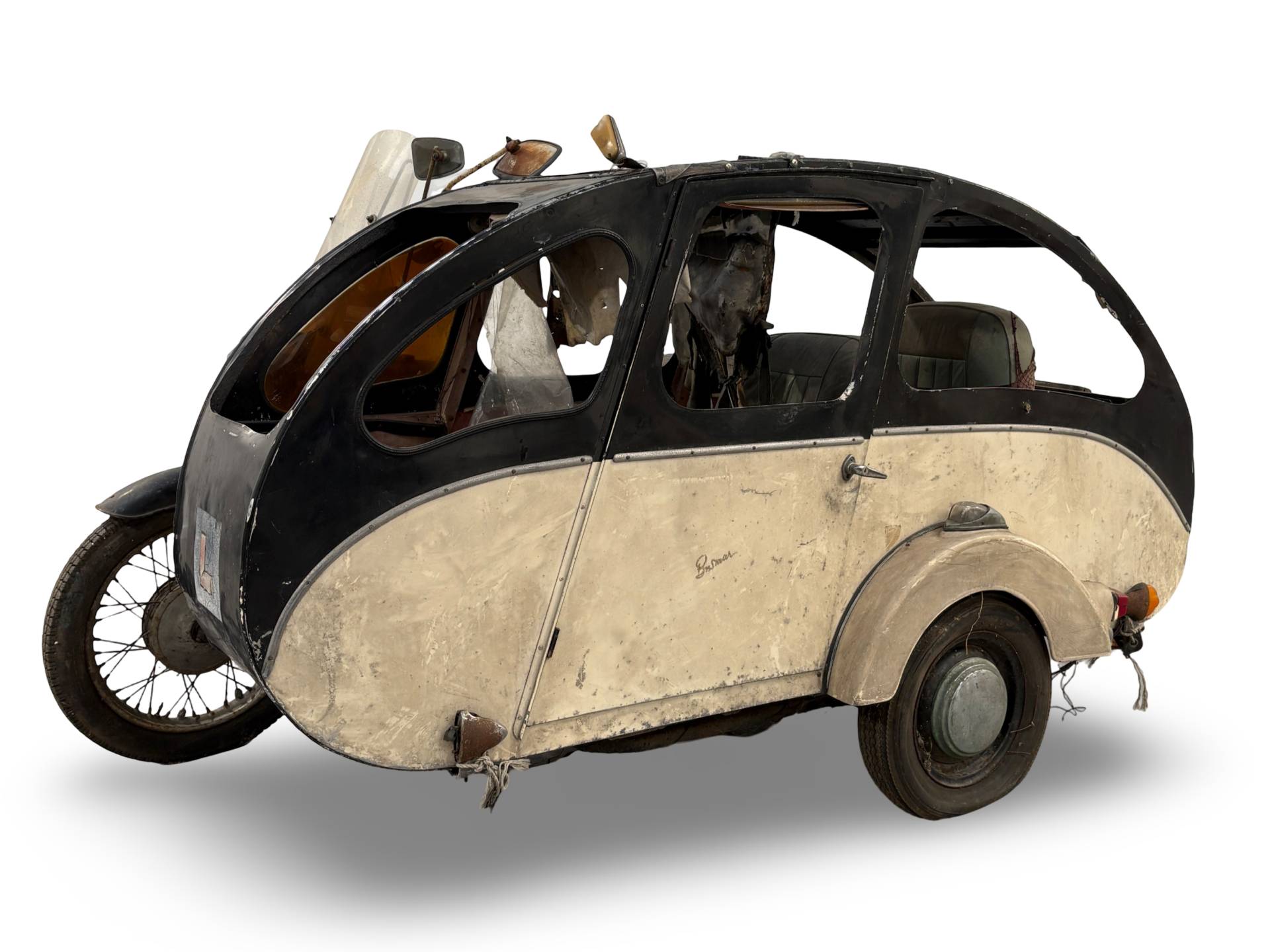 Prezentowany zestaw współpracował z dwuosobowym wózkiem marki Busmar. Firma ta, słynąca z komfortowych, „limuzynowych” konstrukcji, była jedną z ikon brytyjskiego rynku sidecarów, zanim początek lat 60. XX w. przyniósł nieuchronny zmierzch tego segmentu. Warto przy tej okazji wspomnieć, że w 1959 roku na rynku brytyjskim pojawił się Mini, który stał się droższą alternatywą transportu rodzinnego dla motocykli z wózkiem bocznym.