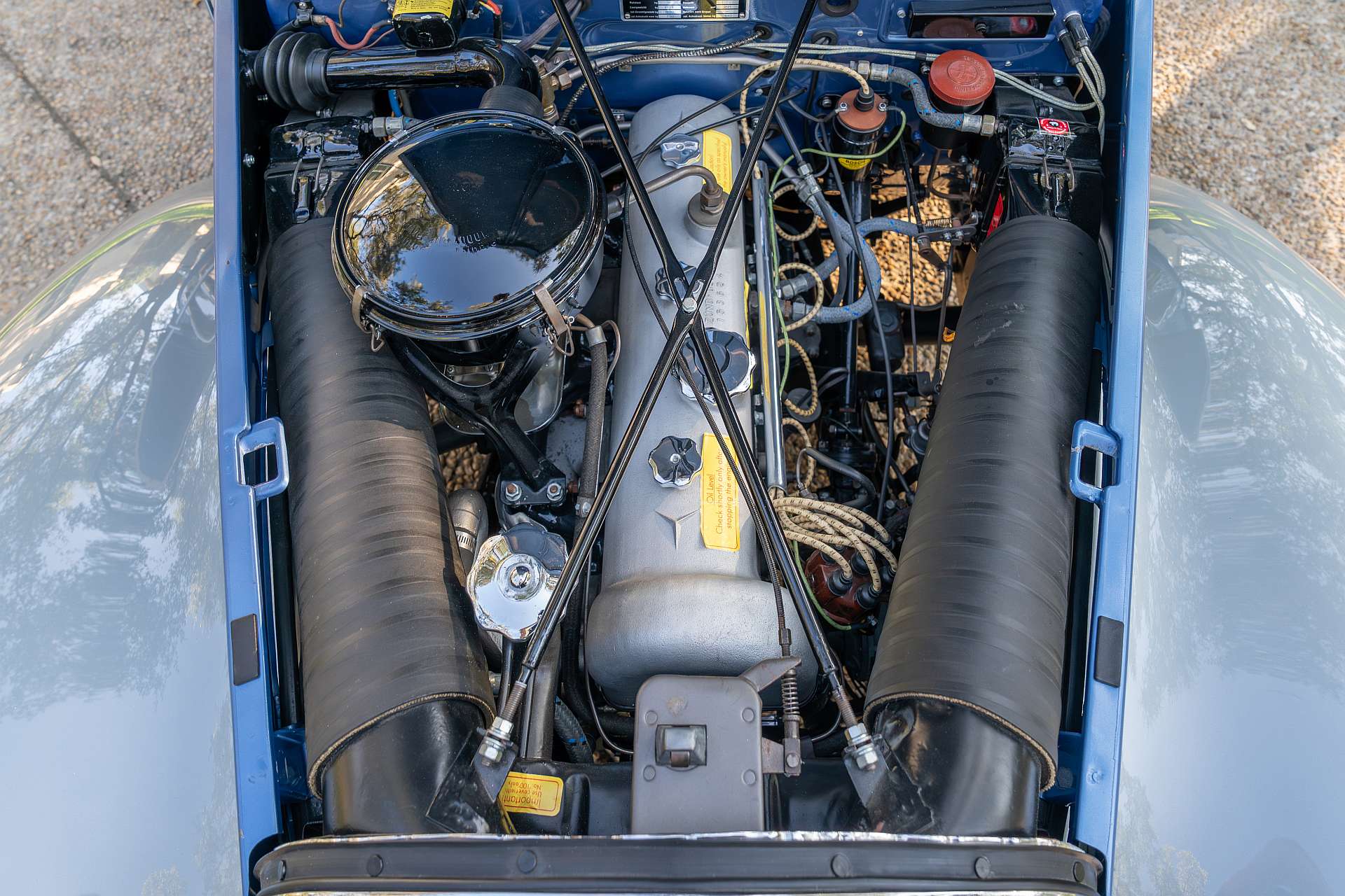 Po 2014 roku samochód trafił do Oregonu, a następnie zmieniał właścicieli jeszcze dwukrotnie. Dziś, zachwycając dwukolorowym lakierem inspirowanym paletą Packarda, nakładanym w 14 warstwach, prezentuje się tak, jakby jego wieloletni opiekun dopiero co zdjął z karoserii miękką polerską szmatkę. Rzadki dach Webasto i niestandardowy, podłogowy lewarek zmiany biegów dodają mu indywidualnego charakteru, czyniąc z niego nie tylko świadectwo epoki, lecz także hołd dla wieloletniej pasji i rzemiosła.