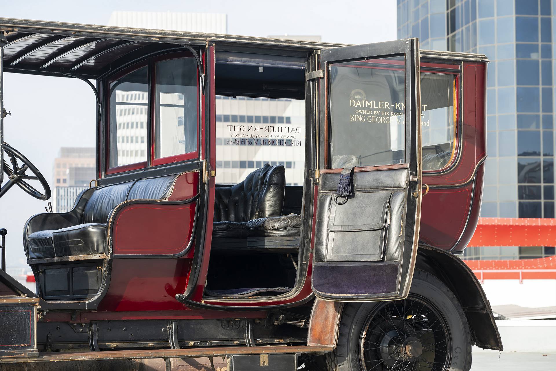 Prezentowany Daimler był jednym z trzech egzemplarzy modelu 57 HP zamówionych do floty brytyjskiej rodziny królewskiej. Zamówienie złożył jeszcze jako książę Walii przyszły król Jerzy V, a dostawa nastąpiła w czerwcu 1910 roku. Samochód, oznaczony numerem podwozia TD 6314, otrzymał monumentalne nadwozie limuzyny, którego proporcje do dziś budzą respekt: ponad 5 metrów długości i przeszło 2,2 metra wysokości. Hooper, nadworny dostawca karoserii, nadał mu formę elegancką, lecz bez ostentacji – godną monarchii.