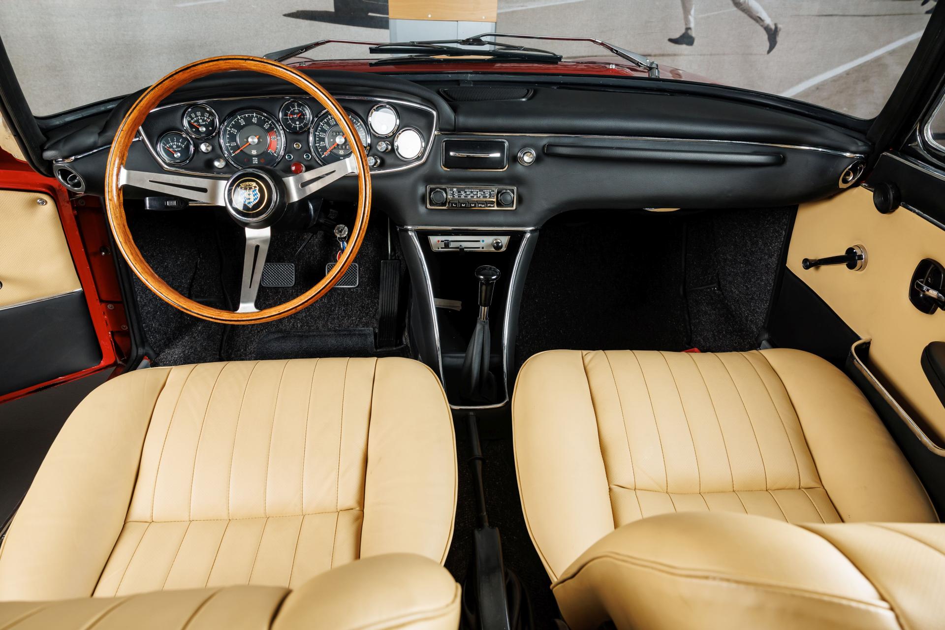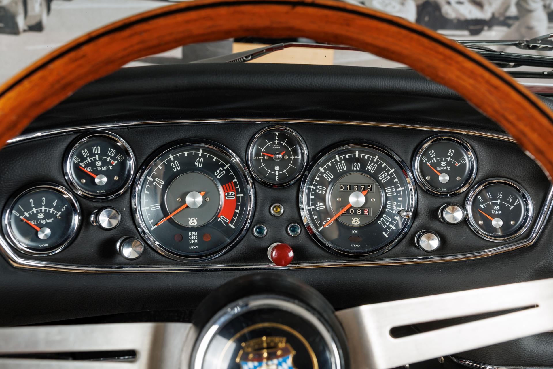 Prezentowany egzemplarz, po raz pierwszy zarejestrowany w 1968 roku, może pochwalić się zaledwie dwoma właścicielami. Przez lata wchodził w skład znanej hiszpańskiej kolekcji, zachowując dużą dozę oryginalności. Kompleksowa renowacja, przeprowadzona z dbałością o detale, przywróciła mu pełnię blasku. Nadwozie prezentuje się nienagannie, a chromowane detale i emblemat Frua na tylnym słupku podkreślają jego rodowód.