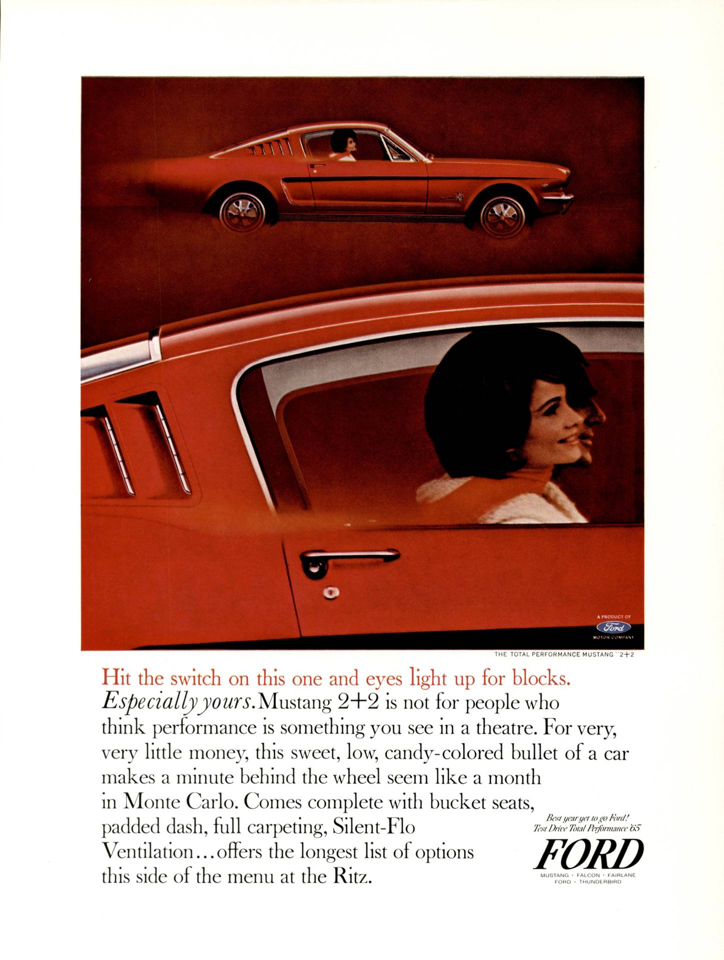 „Mustangi będą ścigać się na torach rajdowych, drogowych i wyścigowych niemal wszędzie tam, gdzie ktoś zechce sprawdzić ich możliwości – czy to w Podunk w USA, czy w Paryżu we Francji” – powiedział Frank E. Zimmerman, kierownik działu pojazdów specjalnych Forda, w kwietniu 1964 roku. Pod koniec tego roku potwierdziły się jego słowa.