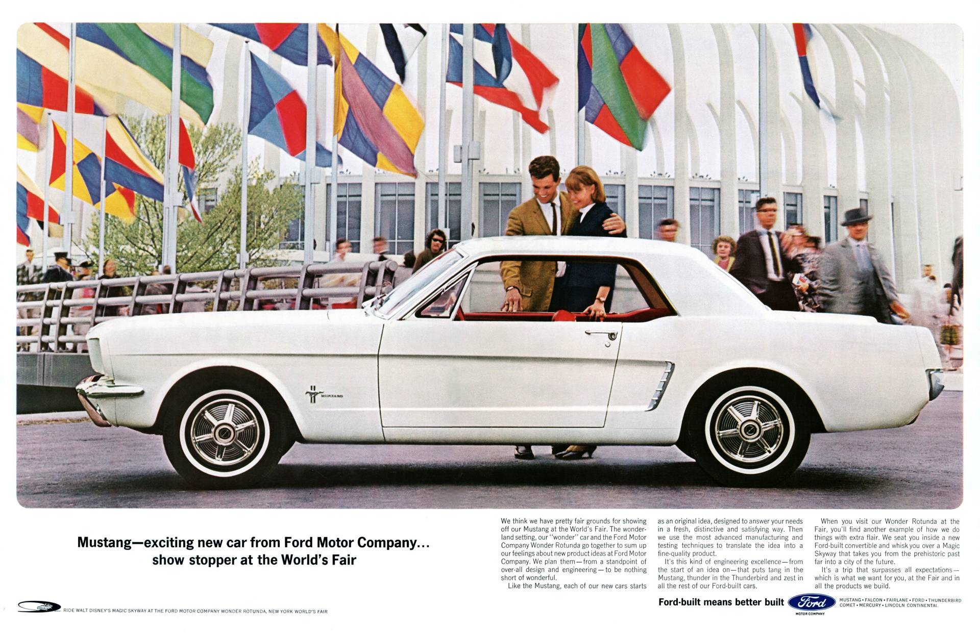 Model, który debiutował podczas Wystawy Światowej w Nowym Jorku w Corona Park w Flushing Meadows, od razu stał się sensacją, pobudzając wyobraźnię kierowców w każdym wieku. Bardzo szybko Mustang stał się dla pokolenia poszukującego swobody symbolem wolności, zaproszeniem na otwarte amerykańskie drogi.