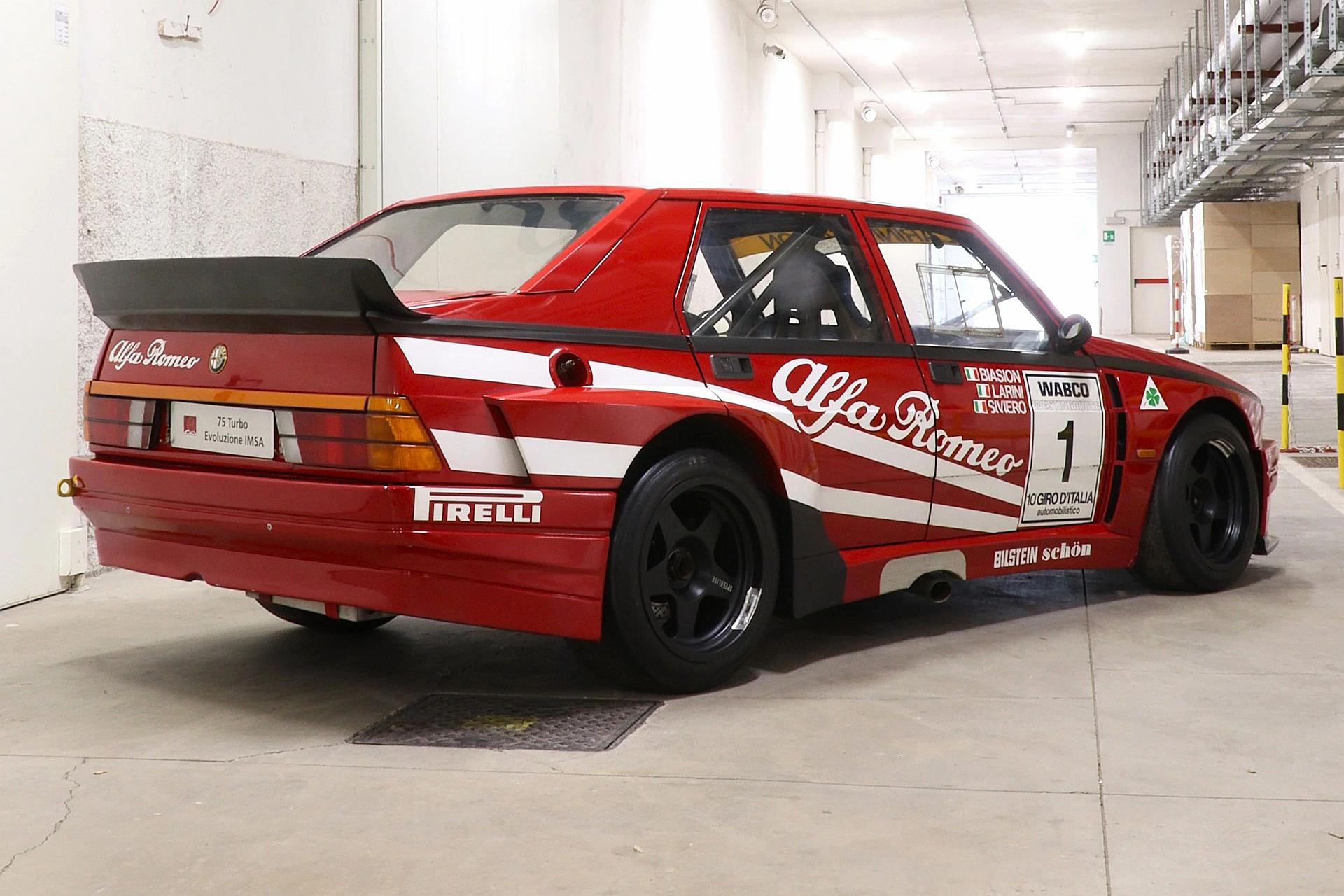 Trzeci eksponat przenosi widza na amerykańskie tory serii IMSA końca lat 80. Alfa Romeo 75 Turbo Evoluzione IMSA to przykład bezkompromisowego podejścia do regulaminu, który pozwalał na daleko idące modyfikacje aerodynamiczne i mechaniczne. Turbodoładowany silnik 1.8 o mocy sięgającej 400 KM, poszerzone nadwozie, tylny spojler z włókna węglowego i masa ograniczona do około 960 kg dawały osiągi przekraczające 270 km/h.