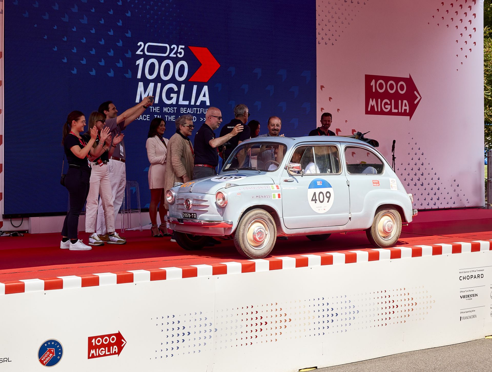 Na ponad 50 przystankach trasy tysiące Włochów witały karawanę klasyków owacjami, flagami i uśmiechem. Wśród nich – pierwszy model Fiata 600 z 1955 roku, prowadzony przez kobiecy duet: Laurę Confalonieri i Valentinę Menassi. Ten wyjątkowy udział był hołdem dla Dantego Giacosy, projektanta, którego 120. rocznica urodzin przypada w tym roku. Fiat 600, samochód-symbol, odegrał kluczową rolę w upowszechnieniu motoryzacji we Włoszech po II wojnie światowej.