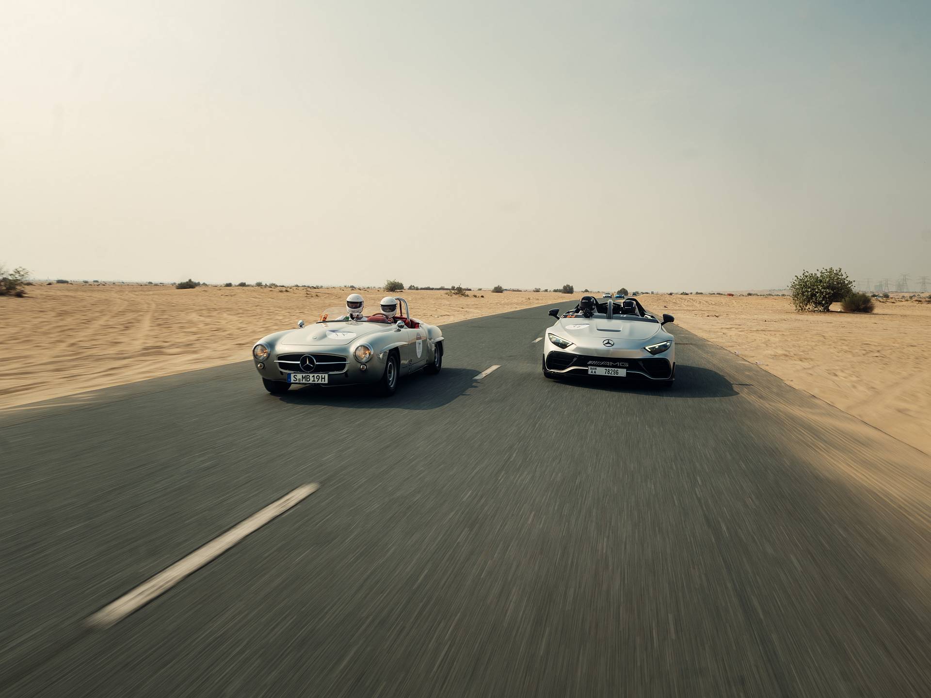Wydarzenie, zorganizowane w dniach 30 listopada – 4 grudnia br., stanowi bliskowschodnią interpretację legendarnej włoskiej Mille Miglia. Wśród 120 starannie dobranych uczestników najwięcej uwagi przyciągał właśnie 300 SLR (W 196S) – konstrukcja, która przed siedmioma dekadami dominowała w światowym sporcie motorowym. Samochód można było podziwiać zarówno w ruchu podczas startu i mety, jak i statycznie na wybranych punktach trasy prowadzącej przez kilka emiratów.